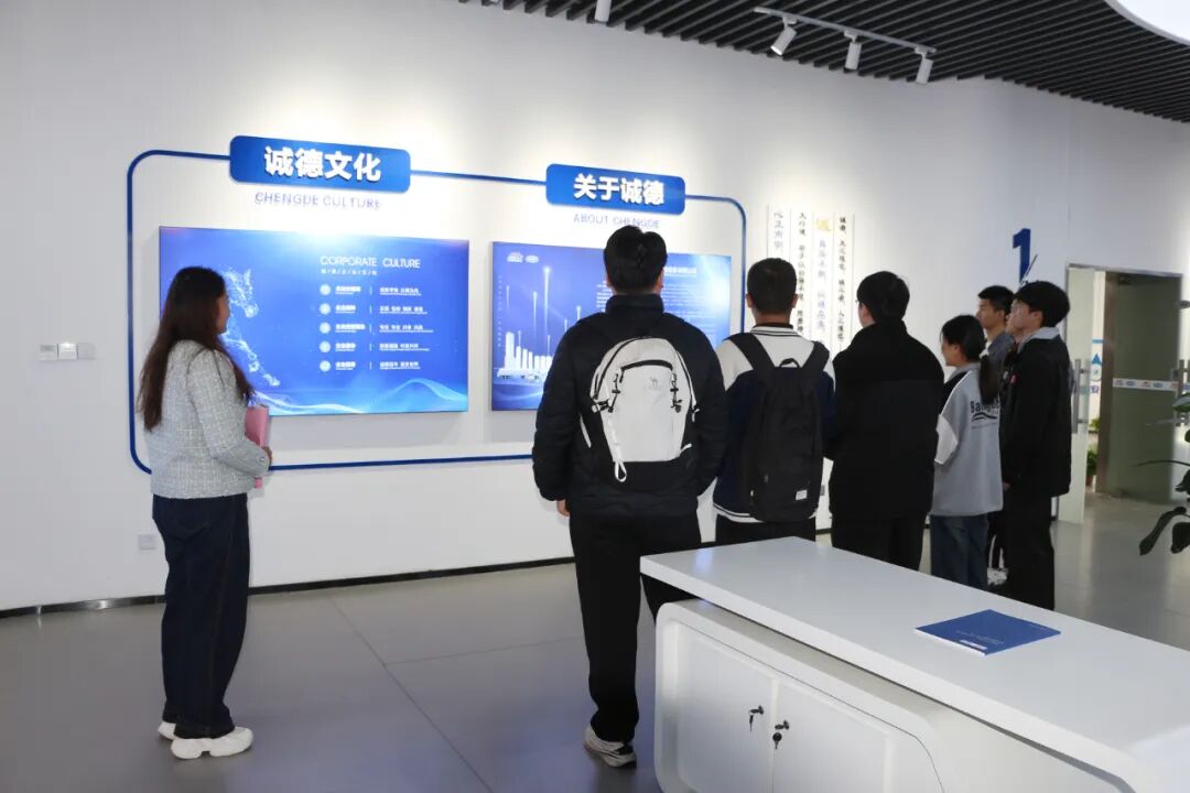 活動(dòng)當(dāng)天近10名學(xué)生來到誠(chéng)德實(shí)地參觀,通過參觀展廳觀看公司宣傳片了解公司的基本情況,感受誠(chéng)德的文化氛圍。